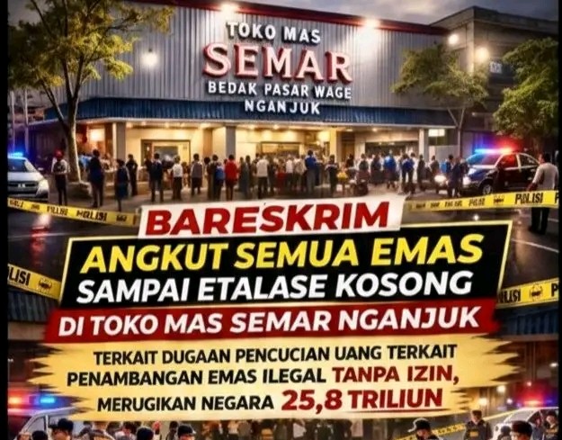Nganjuk, Jawa Timur — Aparat penegak hukum bergerak cepat membongkar dugaan praktik pencucian uang (TPPU) yang bersumber dari aktivitas pertambangan emas ilegal. Penyidik Bareskrim Polri melakukan penggeledahan di sejumlah lokasi toko emas di wilayah Nganjuk, dengan hasil penyitaan emas dalam jumlah besar hingga etalase toko dilaporkan kosong.