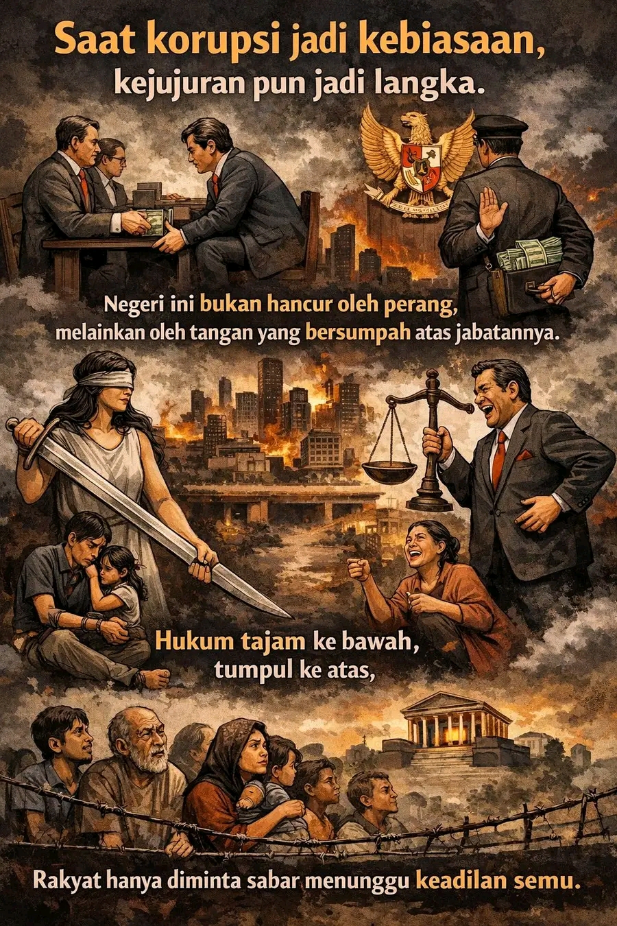 Negeri ini tidak runtuh oleh perang. Ia terkikis oleh pengkhianatan moral para pemegang amanah. Ketika sumpah jabatan hanya menjadi formalitas, dan hukum dipermainkan demi kepentingan segelintir elite, maka yang hancur bukan hanya institusi, tetapi masa depan bangsa.